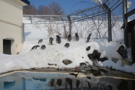 おたる水族館、冬のジェンツープールです。石なのかペンギンなのか、よくわからない個体もいますよ。