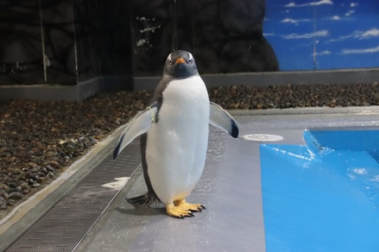 越前松島水族館のジェンツー黄色嬢、きっちりとポーズを決めています。キリッとした表情がハンサム。ーーー...