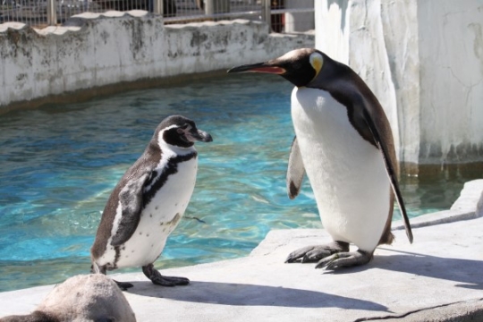 前回写真で身体の大きさを比べてみたキングとフンボルト、どちらもペンギンですから同じ動作をします。こち...