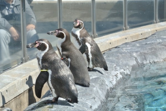 旭山動物園、アクリル越しに人間を観察しているふうのフンボルトでした。