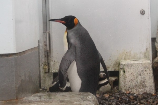 旭山動物園のペンギン室、一番奥までブラブラと視察にお出ましのキング。よく見ると、隅っにいるフンボルト...