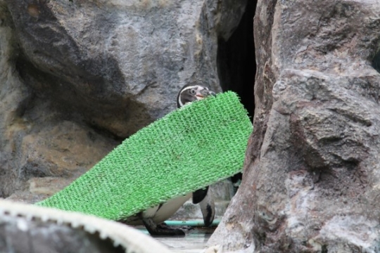 こちらは京都市動物園、ある年の繁殖シーズンに見かけたフンボルトの巣材運び。ごく普通の巣材です。同じフ...