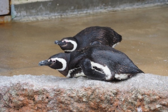 マゼランの二段重ね?!と思ったら、1羽は奧にいるのでした。いしかわ動物園。