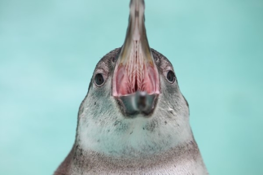 前回登場のフンボルト亜成鳥。お口の中を見せてくれました。上顎に突起がびっしり、奥に向かってはえていま...