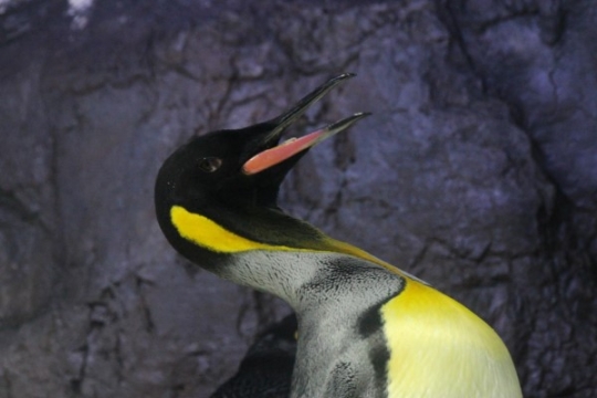 海遊館のキング、首をよーく伸ばして、ーーーーーーーーーーさらにお口をくわっと開けて、下クチバシで首を...