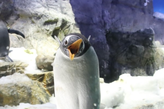 さて、足とクチバシのオレンジイエローが目印のジェンツーですが、お口の中も同じ色です。ちょっと口を開け...