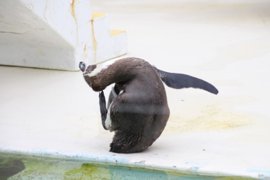 おたる水族館のフンボルト、器用に足で頭を掻いています。ーーーーーーーーーー旭山動物園のキングが同じこ...