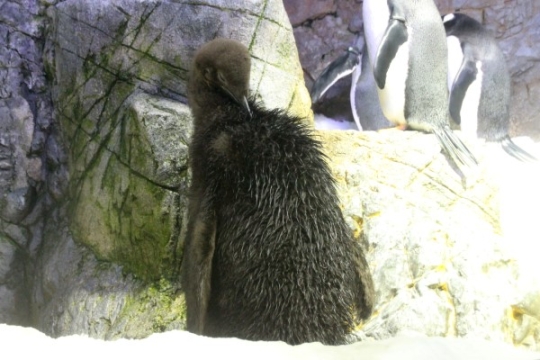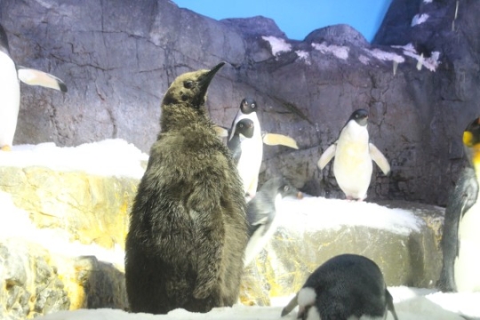 海遊館キングのヒナ、羽づくろいする格好は一人前のオトナと同じです。ーーーーーーーーーーこちらのモデル...