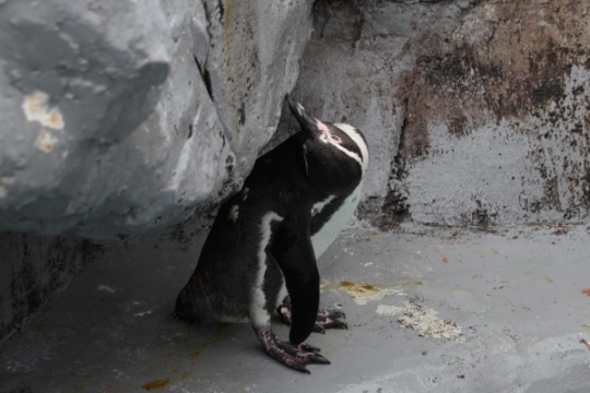 南知多ビーチランドのフンボルト、岩壁が何か気になるようです。身体は動かさず首だけで対応するところが、...