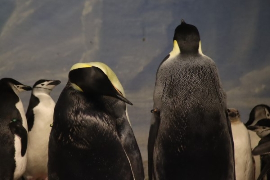 名古屋港皇帝、2羽が仲良く並んでいます。ずんぐりむっちりとしたエンペラーですが、首が案外しっかりと曲...