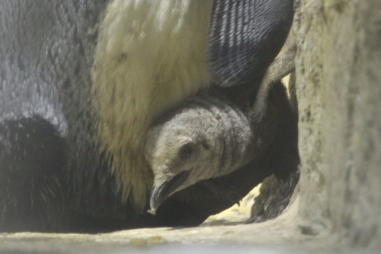 海遊館のキング親子続きです。おなかいっぱいになると、ヒナは頭をお父さんのお腹の下に押し込んでお昼寝タ...