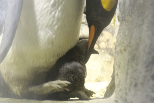 海遊館で子育て中のキング母。ペンギンは交代で育児をします。海へサカナを獲りに行く必要がないので、オフ...