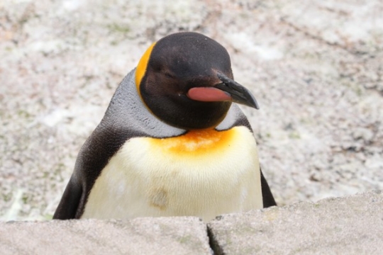 ペンギンのヒナが続いたので、ついでにキングも。ヒナのもふもふ幼綿羽は長い上に、立った状態でビッシリと...