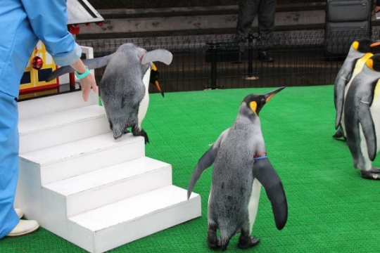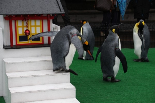越前松島水族館の年末年始はペンギンの初詣。年末は練習なんですが、本番と全く同じ! 階段を上がってお社...