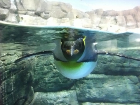 南知多のフンボルト、真ん中にいるのはハクちゃんです。ハラの模様が、なんだかフクロウのイラストに見えて...