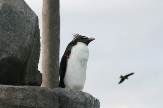 こちらは海遊館のミナミイワトビ、生後半年くらいの亜成鳥、つまり御子様です。黄色い『眉』がうっすらと出...