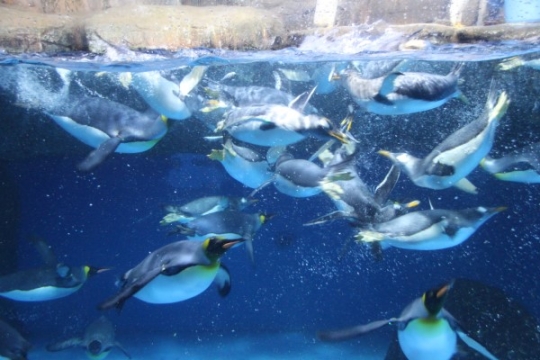 所狭しとハイスピードで泳ぎ回るペンギン集団、キングとジェンツーです。@アクアパーク品川