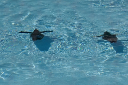 越前松島水族館のハート形リングプール、見上げれば青空を背景にフンボルトが泳ぎます。写真のフンボルトは...