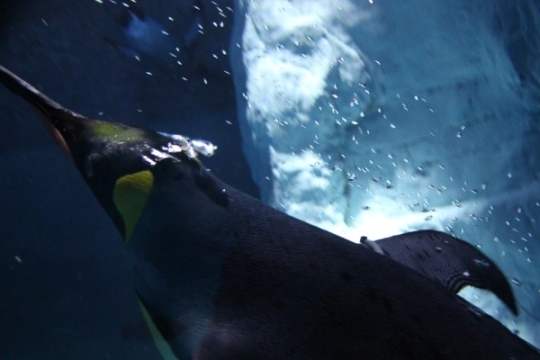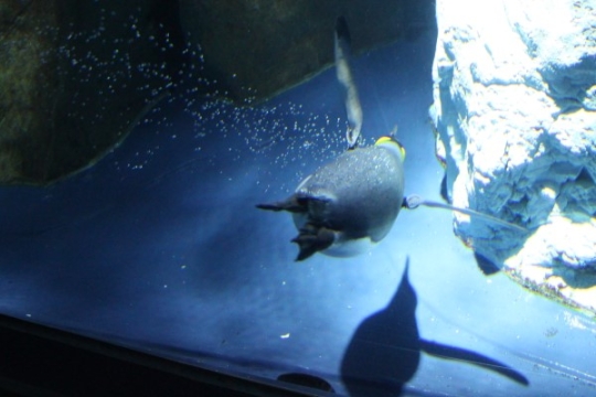 海遊館キングの優雅な水中姿。背中から細かな泡が出てきます。ついでに私の好きな『ペンギンの影』もクッキ...