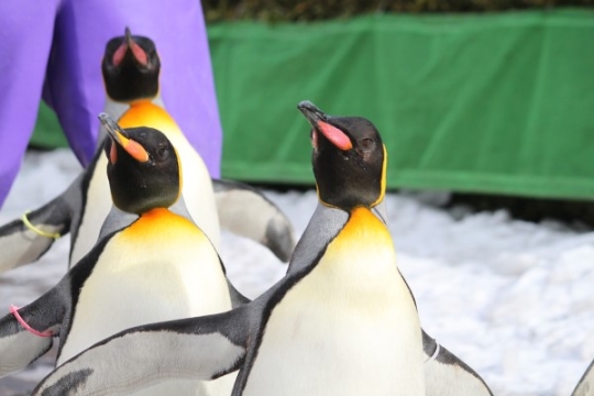 「いざ、出陣じゃ。」 登別マリンパークニクスのペンギンパレード、厳粛な面持ちでお出ましになるキング。...
