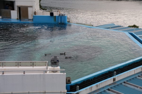 ペンギンとイルカとサカナが泳ぐのとじま水族館のプール、上から見るとこうなっています。海面からはかなり...